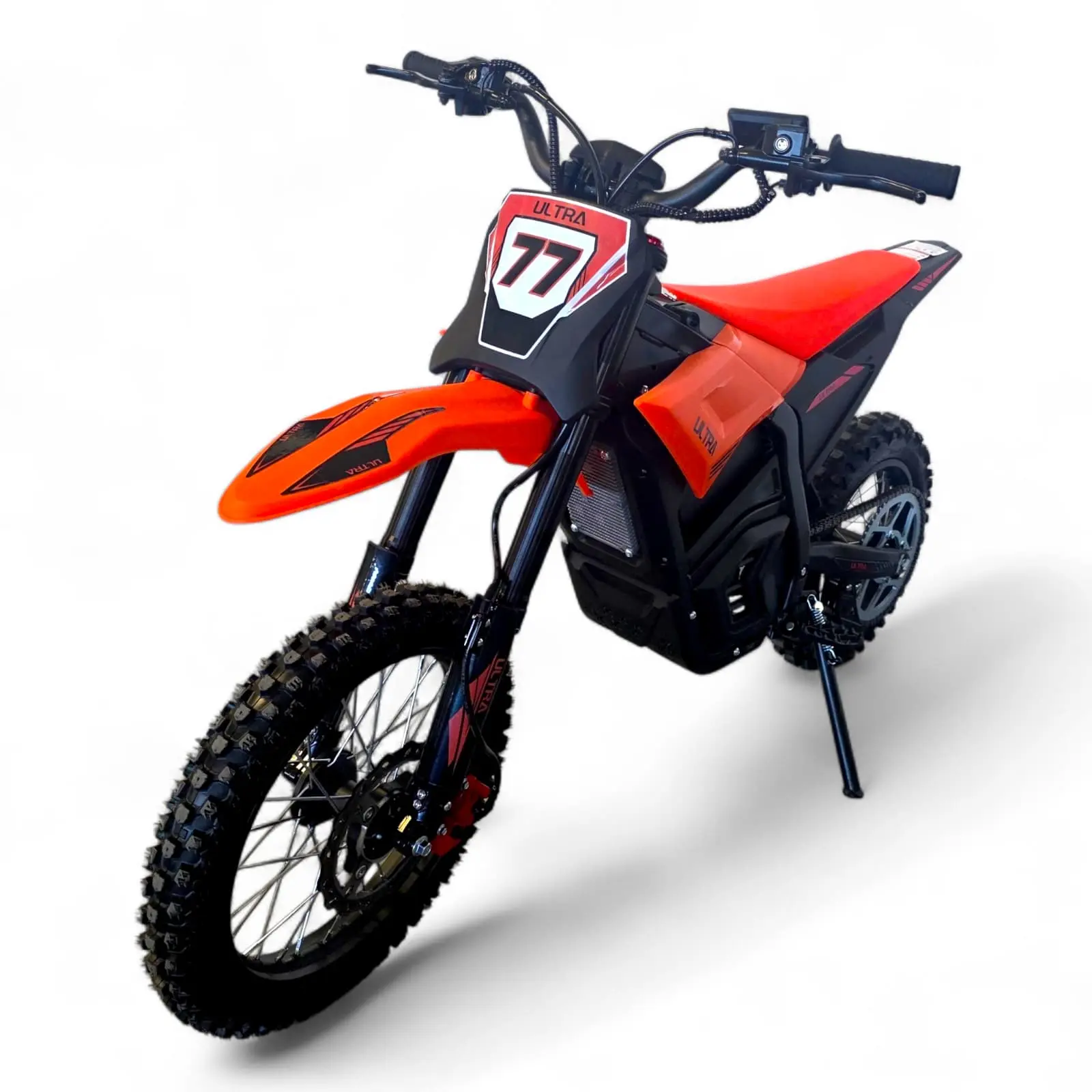 Motocross-ul Electric Ultra pentru copii oferă performanță și siguranță într-un pachet compact și modern. Dotat cu motor de 2500W și baterie Lithium de 48V, asigură o autonomie de până la 60-70 km și o viteză maximă de 65 km/h. Sistemul de limitare în 3 trepte permite adaptarea puterii în funcție de experiența utilizatorului, iar suspensia reglabilă și frânele hidraulice oferă control și confort pe orice teren. Ecranul digital și protecția IPX6 completează un model ideal pentru aventuri off-road.